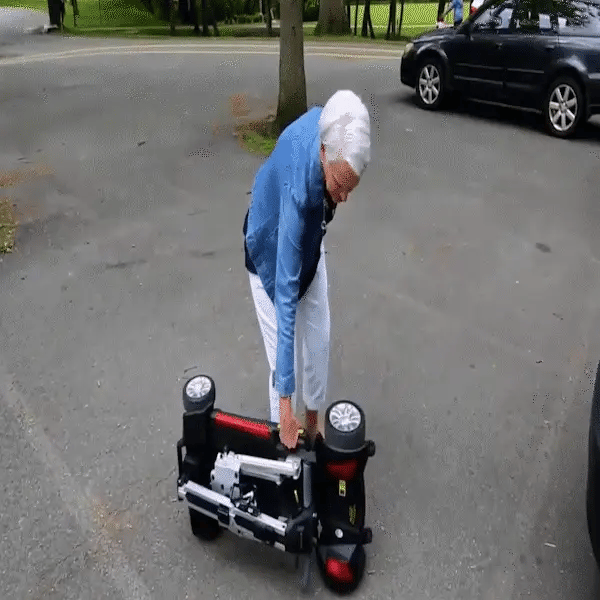 Foldable: this scooter can be easily folded thanks to its automatic folding system with remote control, so you can easily store and transport the electric scooter for the disabled in minutes. It can be charged when folded.